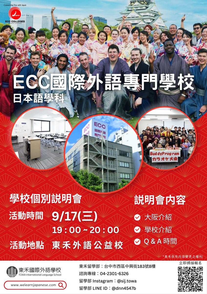 大阪知名學校『ECC國際外語專門學校-日本語學科』將於東禾舉辦個別說明會!
