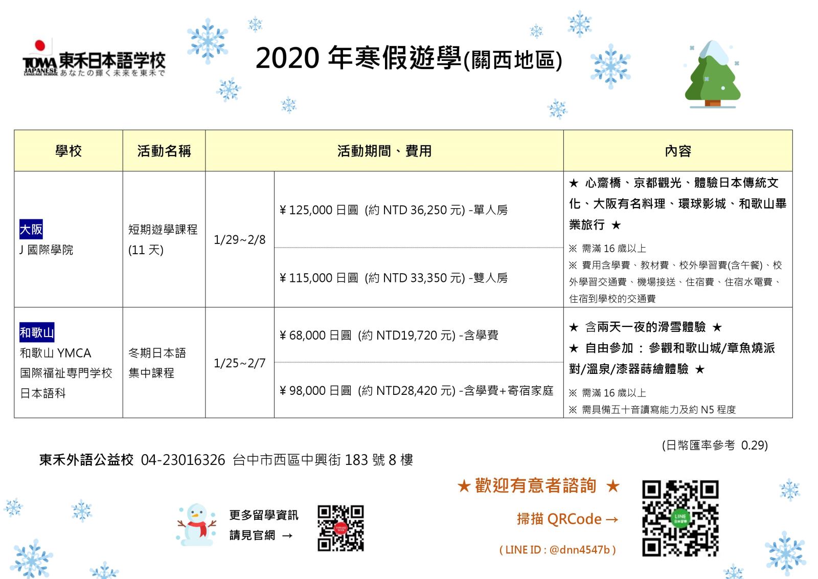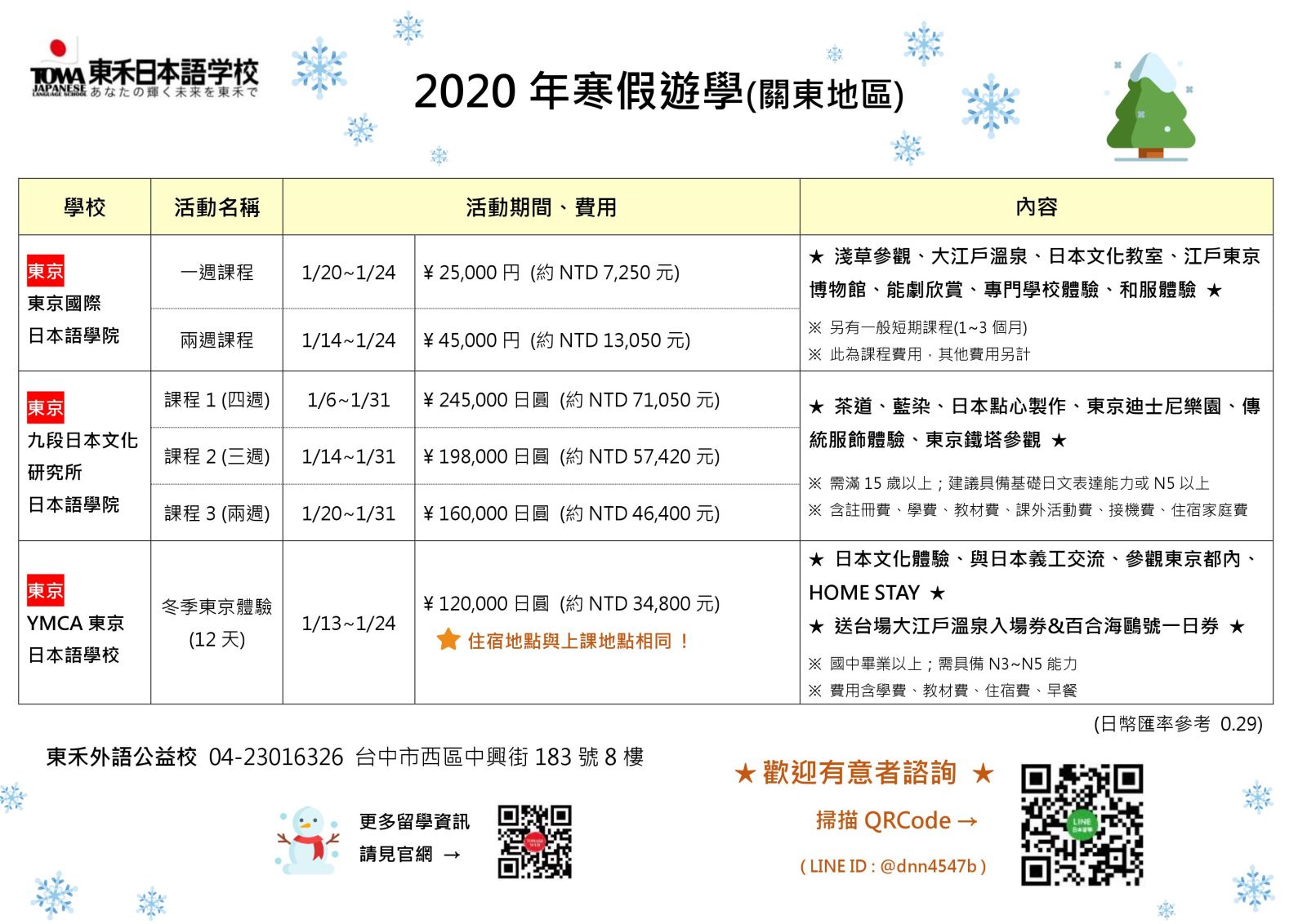 ※ 另有其他冬季遊學課程、亦有短期留學課程(數周~3個月),歡迎諮詢!!