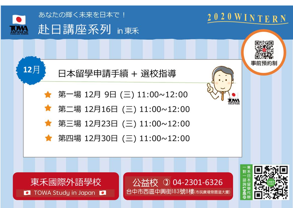 2020.12 月份 赴日講座及留學說明會 《預約制》 我要參加